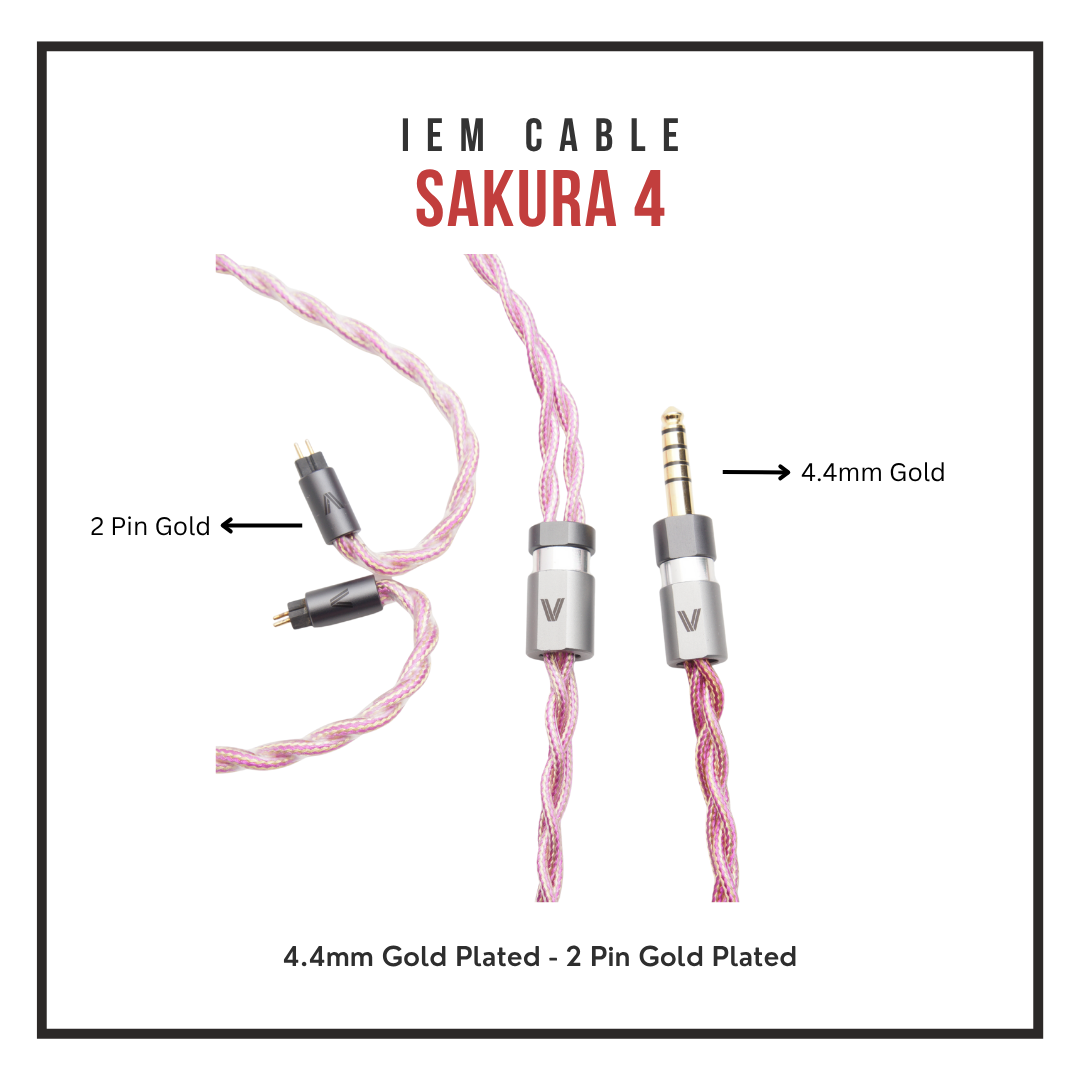 Verus Audio Sakura 4-Braid Cable - OCC Gold/SPC Hybrid - Balanced Warm Sound (IEM/Headphone) - 4.4mm/XLR/MMCX/Sennheiser
